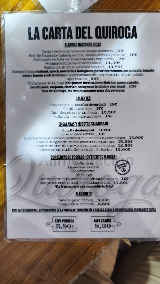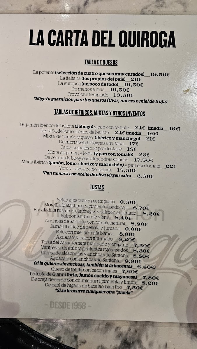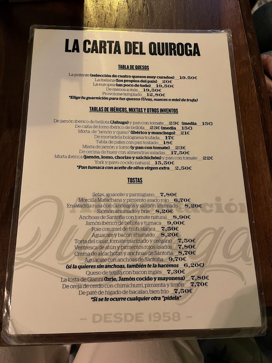 At Alimentacion Quiroga, the menu offers a thoughtful mix of traditional Spanish flavors and carefully selected European influences. It’s the kind of place where you can casually linger over a glass of vermú de grifo or enjoy a relaxed afternoon bite with friends. The dishes range from simple yet satisfying charcutería and assorted cheeses to more distinctive plates like tostas topped with pastrami or artichoke cream paired with anchovies from Santoña.